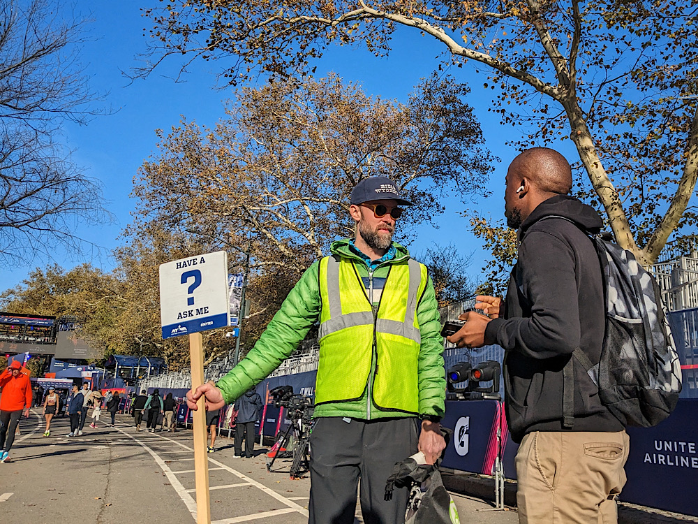 Di nuovo su 4th Avenue. Questa volta, piano piano, sta uscendo pure  il sole e siamo a fare il tifo. Come tantissimi altri, lungo tutto il percorso. Newyorchesi e persone che arrivano da fuori per la gara o per visitare la città. Il consiglio che si da sempre ai maratoneti è quello di scrivere il proprio nome sulla maglietta. Così, al loro passaggio, puoi incitarli a squarciagola. Quando sentono il loro nome, si voltano e sono sempre contenti, regalandoti sorrisi come se ti conoscessero da sempre. Lo faccio sempre, io, ed è la parte più divertente della giornata. Con gli italiani, poi, mi lascio proprio andare.